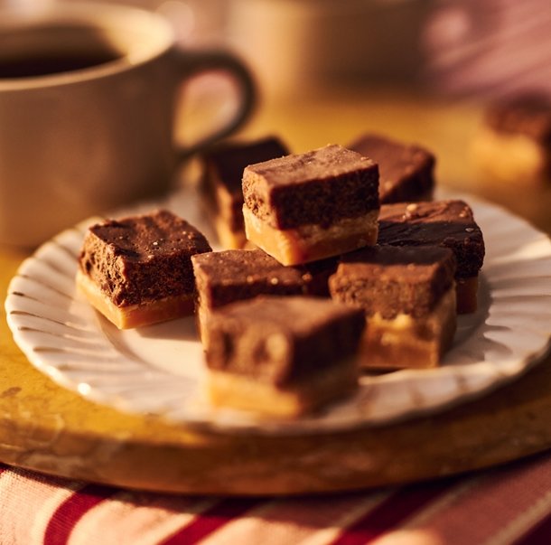 Handmade in Harrogate, this smooth, sweet fudge is a moreish combination of rich chocolate brownie and creamy salted caramel. Layered for next level decadence and that deep, sweet-salty balance in every bite. Fairtrade sourced cocoa – mass balance. Visit info.fairtrade.net/sourcing.